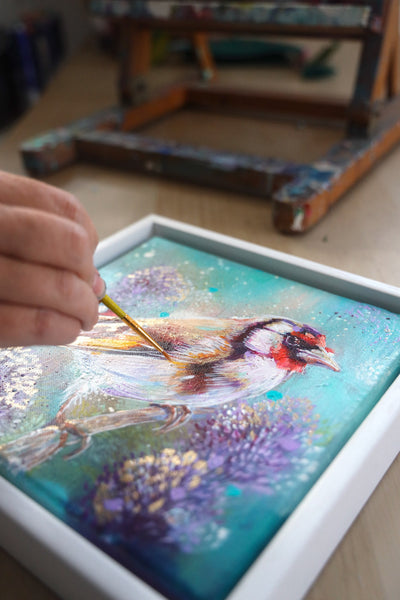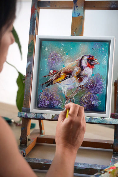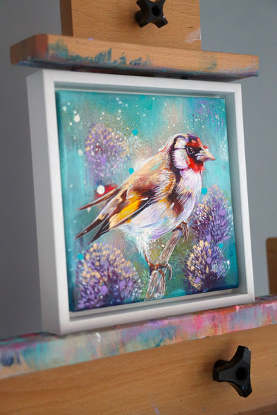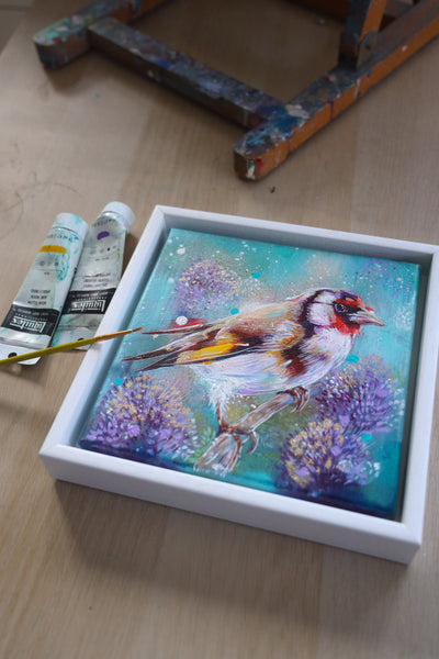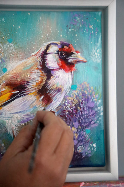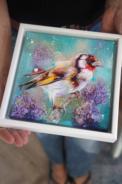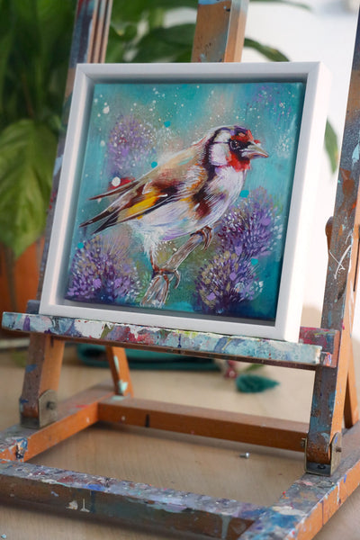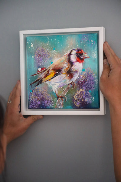 · A one-off, framed original painting of a goldfinch — truly unique, with only one available in the world.
