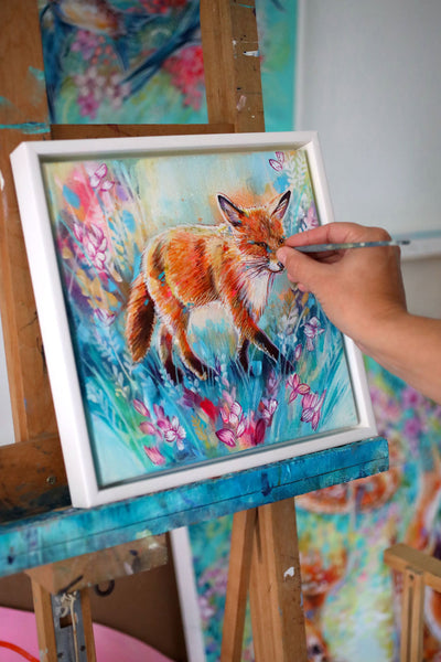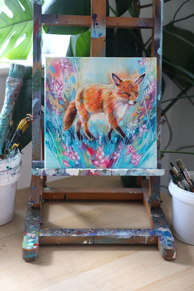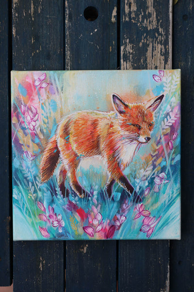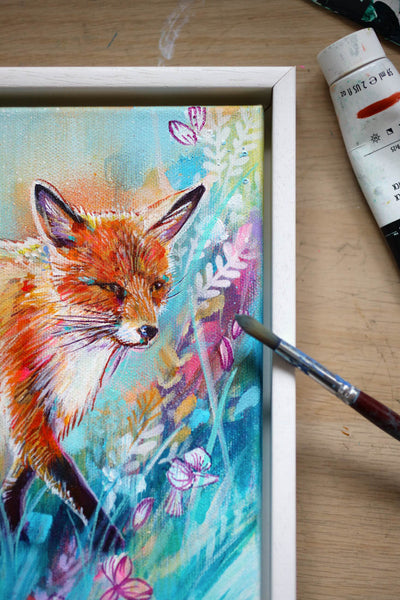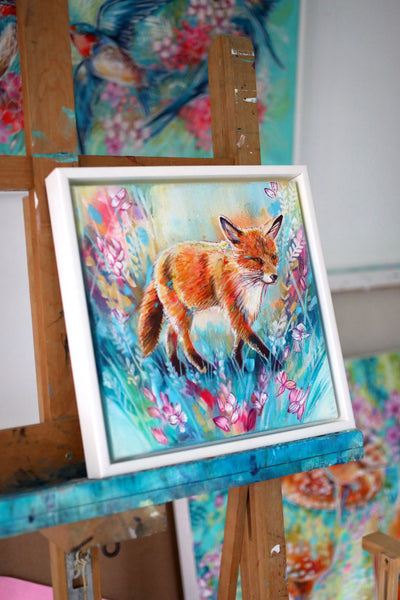 ‘Homeward' is an original fox and wildflower painting by British artist Sian Storey.