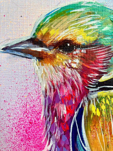- An original painted drawing of a pair of Indian Roller birds, hand drawn and signed by artist Sian Storey.