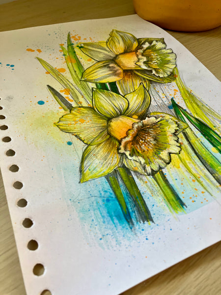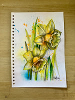 • An original painty drawing of daffodils, hand drawn and signed by artist Sian Storey.