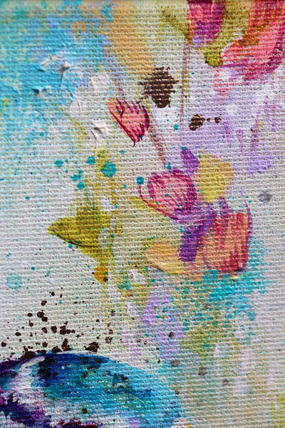As the sole owner of this original artwork, you’ll notice subtle details that photographs can’t fully capture. Gentle brushwork combines with soft veils of spray paint, creating layers of texture and depth that invite you to look closer.